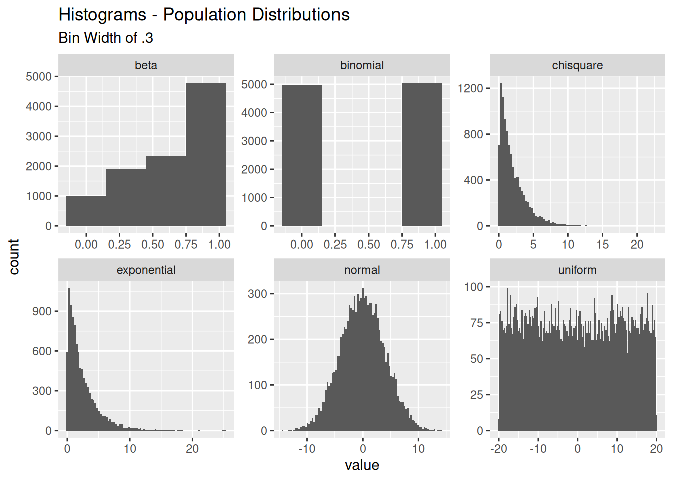 | uniform | normal | binomial | beta | exponential | chisquare |